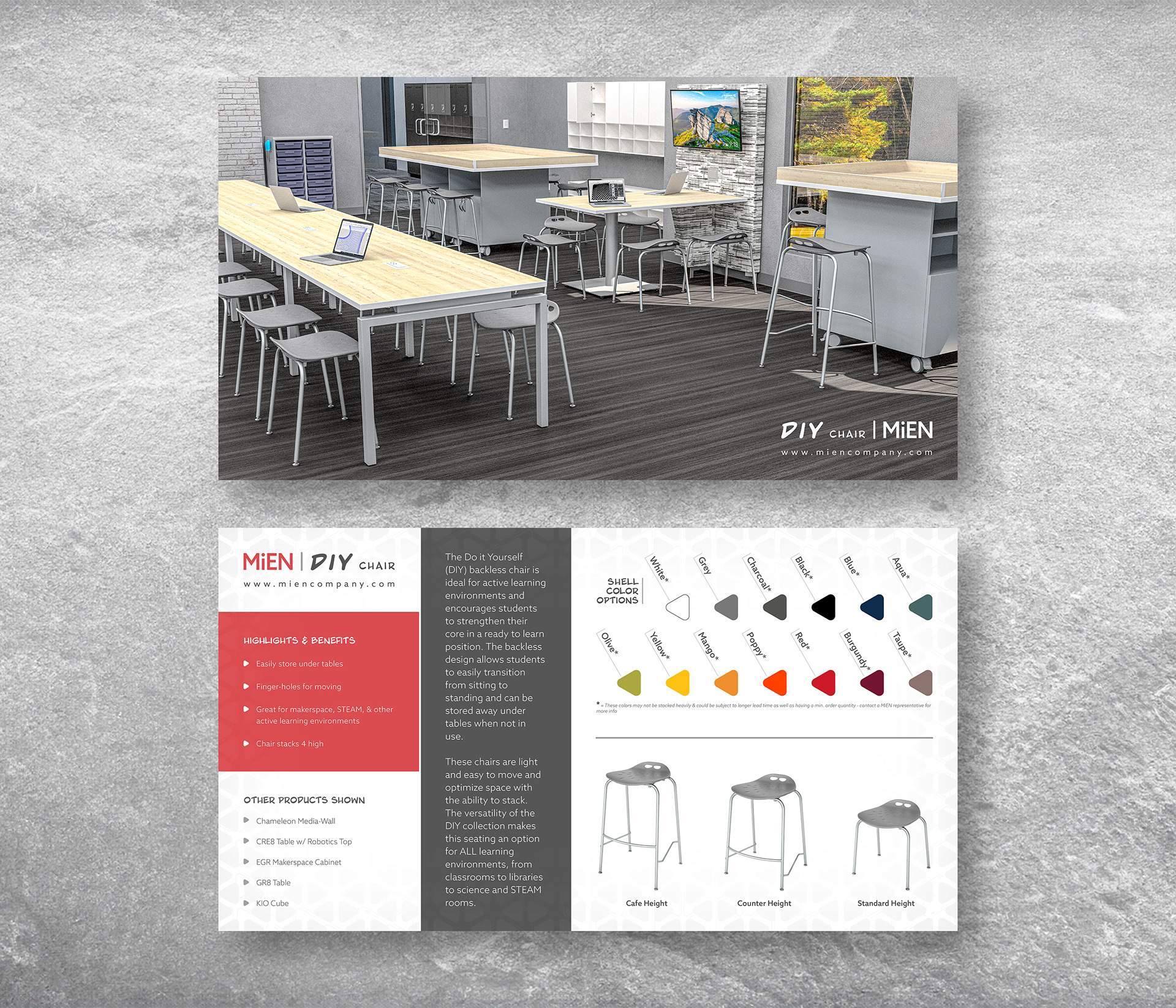 A constantly evolving series of 30+ double-sided product cards developed for MiEN Company. Designed for print use and providing clear product information and visuals for sales and marketing.